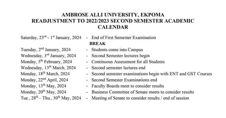 AAU RELEASES ADJUSTED ACADEMIC CALENDAR FOR THE 2022/23 ACADEMIC SESSION February 3, 2024 by Abdullah Sulaiman Alabi Advertisements Related Related posts: HOW TO GET ADMISSION TO OXFORD UNIVERSITY LIST OF SCHOOLS WHOSE POST UTME FORMS ARE ON SALES FOR 2023/2024 LIST OF SCHOOLS WHOSE POST UTME FORMS ARE ON SALES FOR 2023/2024 NNPC, SEPLAT 2024 UNDERGRADUATE SCHOLARSHIP PROGRAMME 2024 Fully Funded Scholarship: Beijing Institute of Technology Scholarship for International Students to Study in China ALSO READ 12 Fully Funded Global Scholarships to Explore in 2023