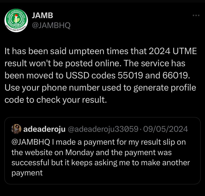 Team Osun The Positive Voice reports that JAMB made this assertion while quoting a tweet recently, stating that 2024 UTME results would not be posted online.