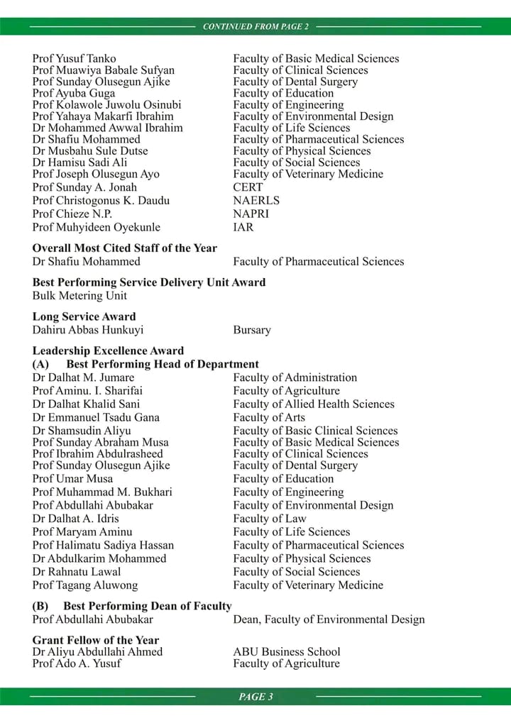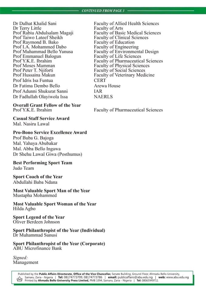 STAFF OUTSTANDING PERFORMANCE: AHMADU BELLO UNIVERSITY HONOURS 117 STAFFS January 23, 2024 by Abdullah Sulaiman Alabi Advertisements Related Related posts: HOW TO GET ADMISSION TO OXFORD UNIVERSITY LIST OF SCHOOLS WHOSE POST UTME FORMS ARE ON SALES FOR 2023/2024 LIST OF SCHOOLS WHOSE POST UTME FORMS ARE ON SALES FOR 2023/2024 NNPC, SEPLAT 2024 UNDERGRADUATE SCHOLARSHIP PROGRAMME 2024 Fully Funded Scholarship: Beijing Institute of Technology Scholarship for International Students to Study in China ALSO READ TASUED RELEASES 2023/2024 ADMISSION LIST VIA SCHOOL PORTAL