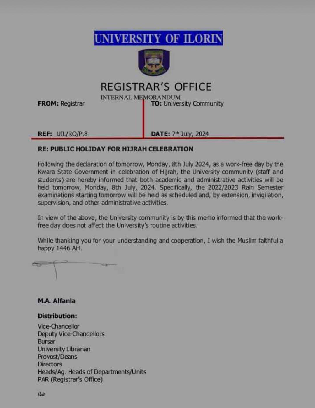 UNILORIN ISSUES NOTICE OVER HIJRAH CELEBRATION July 7, 2024 by Abdullah Sulaiman Alabi Related Related posts: HOW TO GET ADMISSION TO OXFORD UNIVERSITY LIST OF SCHOOLS WHOSE POST UTME FORMS ARE ON SALES FOR 2023/2024 LIST OF SCHOOLS WHOSE POST UTME FORMS ARE ON SALES FOR 2023/2024 NNPC, SEPLAT 2024 UNDERGRADUATE SCHOLARSHIP PROGRAMME 2024 Fully Funded Scholarship: Beijing Institute of Technology Scholarship for International Students to Study in China ALSO READ University of Benin (UNIBEN) Cut-Off Mark For Admission 2025/2026