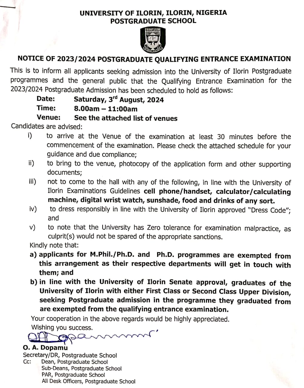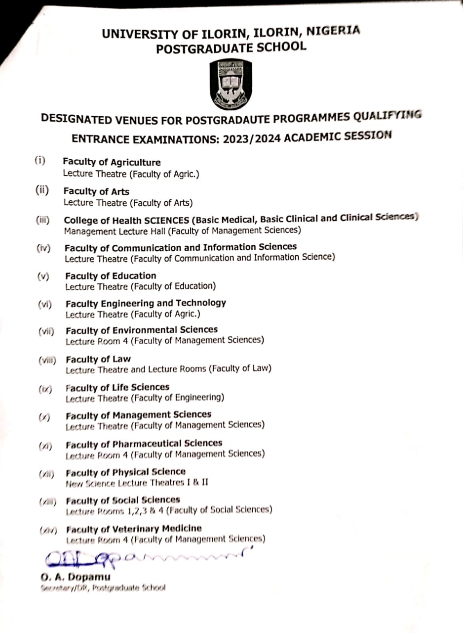 UNILORIN RELEASES SCHEDULES FOR POSTGRADUATES QUALIFYING ENTRANCE EXAMINATION FOR 2023/24 ACADEMIC SESSION July 15, 2024 by Abdullah Sulaiman Alabi Related Related posts: HOW TO GET ADMISSION TO OXFORD UNIVERSITY LIST OF SCHOOLS WHOSE POST UTME FORMS ARE ON SALES FOR 2023/2024 LIST OF SCHOOLS WHOSE POST UTME FORMS ARE ON SALES FOR 2023/2024 NNPC, SEPLAT 2024 UNDERGRADUATE SCHOLARSHIP PROGRAMME 2024 Fully Funded Scholarship: Beijing Institute of Technology Scholarship for International Students to Study in China ALSO READ UNILORIN RELEASES REVIEWED TUITION FEES FOR 2022/2023 ACADEMIC SESSION